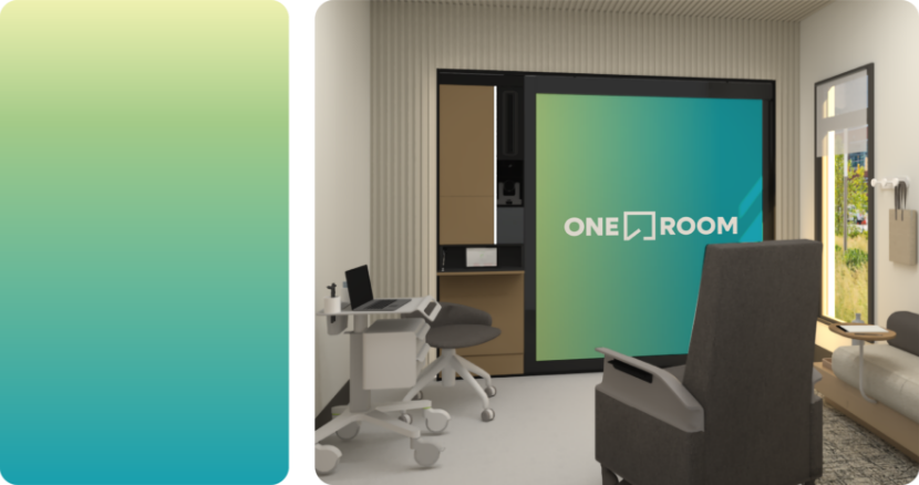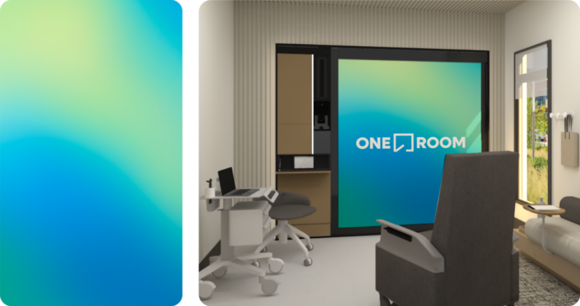The OneRoom brand uses gradients as backgrounds, visual accents and to highlight key words.